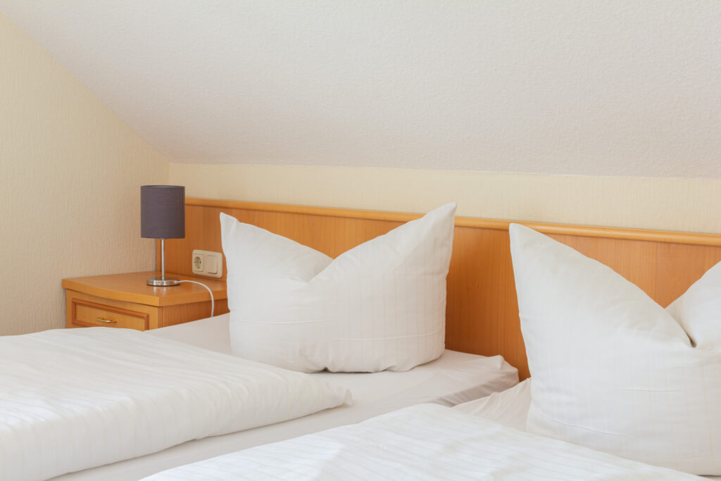 Nebentisch, CD-Player, Flatscreen, Doppelbett mit komfortablen Matratzen